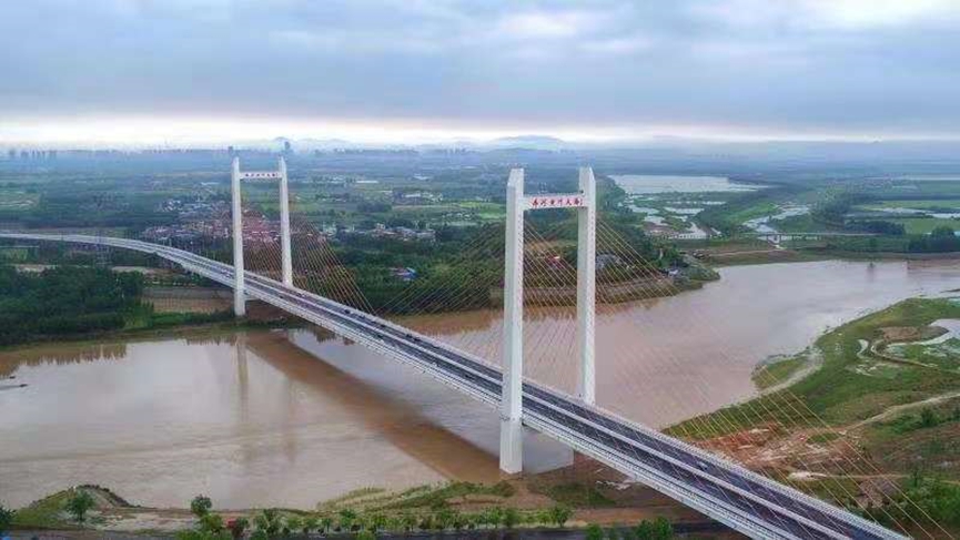 濟齊黃河公路大橋位于濟南市槐蔭區(qū)與德州市齊河縣交界處,是山東省委省政府“一圈一帶”發(fā)展戰(zhàn)略的重要基礎設施工程。大橋全長3767.9米,主橋采用塔墩固結(jié)、塔梁分離半漂浮體系,全長840米,主跨為單跨跨徑410米雙塔雙索面鋼-混組合梁斜拉橋,是黃河流域單跨最大的斜拉橋。該橋進一步拉近濟南與齊河之間的距離,大大加快德州融入省會經(jīng)濟圈的腳步。