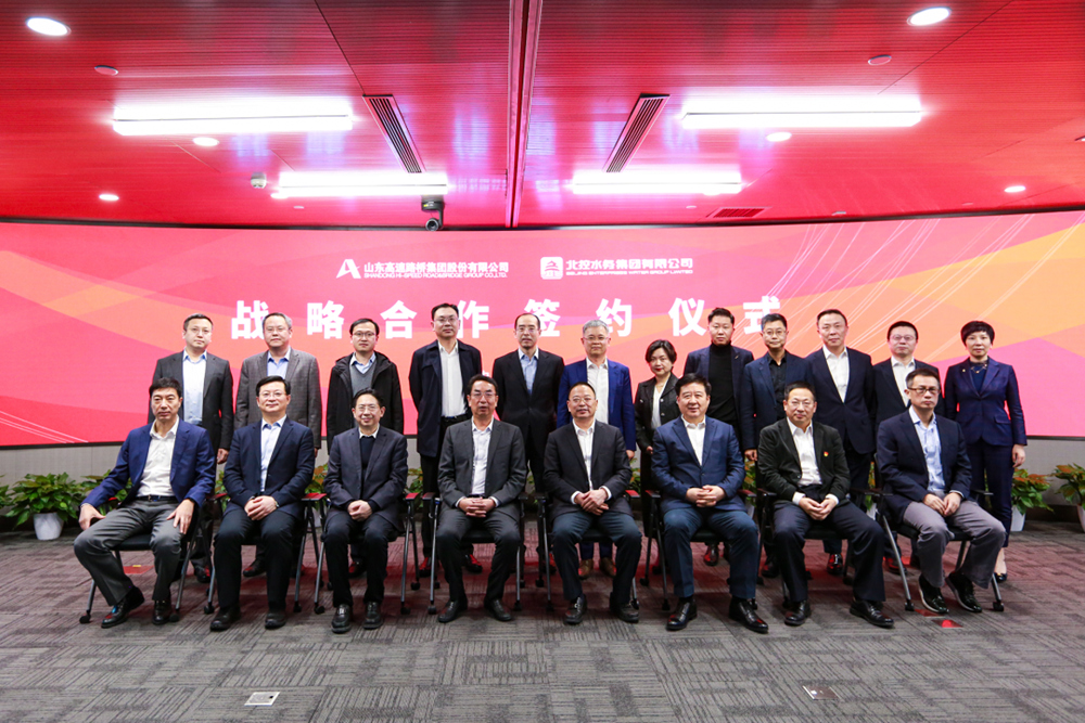 3月21日,公司與北控水務(wù)集團(tuán)在京簽署戰(zhàn)略合作框架協(xié)議,雙方將本著“資源共享、優(yōu)勢互補(bǔ)、強(qiáng)強(qiáng)聯(lián)合、互惠互利”的原則,構(gòu)建合作共贏、可持續(xù)發(fā)展的戰(zhàn)略合作伙伴關(guān)系。山東高速集團(tuán)總工程師、公司黨委書記、董事長周新波與北控水務(wù)集團(tuán)總裁周敏分別代表雙方簽約。山東高速集團(tuán)黨委書記、董事長周勇,黨委常委、副總經(jīng)理李航,執(zhí)行總監(jiān)、山高金融集團(tuán)董事會(huì)主席王小東;北京控股集團(tuán)黨委書記、董事長田振清,黨委常委、副董事長、常務(wù)副總經(jīng)理、北控水務(wù)集團(tuán)董事局主席李永成,黨委常委、副總經(jīng)理王劍,總經(jīng)理助理、北京控股總裁熊斌等及北控水務(wù)集團(tuán)執(zhí)行總裁李力等執(zhí)行機(jī)構(gòu)領(lǐng)導(dǎo)出席簽約儀式。